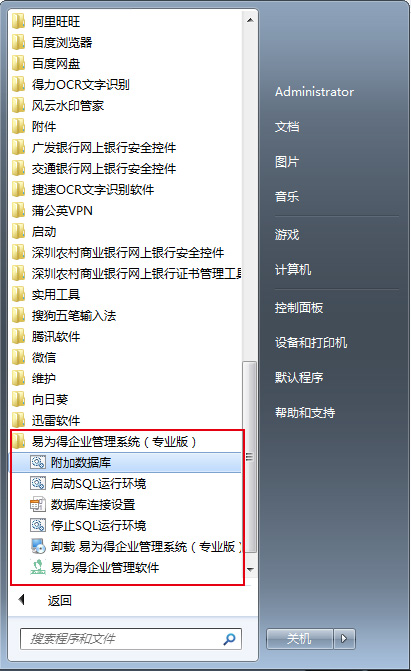 点击开始按钮,打开“所有程序”-》易为得企业管理系统
